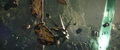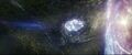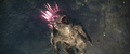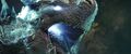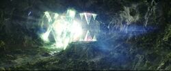 Right in between the largest pair of Electromagnetic pyramids lies a pocket of untouched space where Mothra formerly lied in wait of her summoning. Here, after Jia touched this supernatural formation, Mothra manifested into physical form in her imago state in front of Jia. The nature of this phenomenon remains unexplored in any of Malenka's appearances.