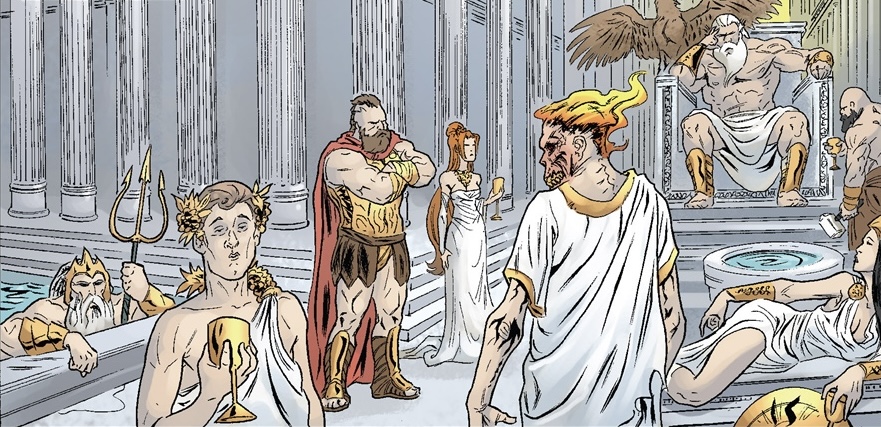 Zoomed-in image of Zeus and the other Olympians in the subscription cover by Tadd Galusha