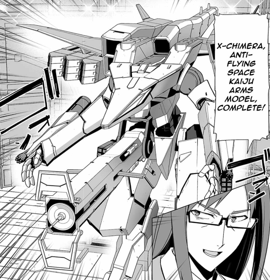 Niel Kamahara began upgrading and attaching weapons to the X-Chimera so that it could be used in the battle against the space monster, Galdra.