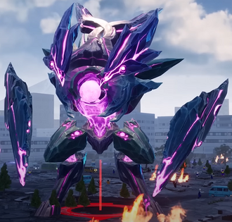 After gathering a sufficient amount of Giga Energy, Zyva achieves peak power to grow to massive proportions, gaining great power and enhanced abilities. Giga Energy is gathered through dealing damage to other Titans, or gathering it from the surrounding environment.