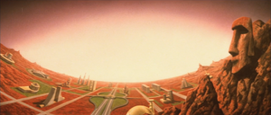 - An underground cavern featuring a strange altar with columns and artificial lights appears in the 2023 short film Godzilla vs. Megalon. Whether this is intended to be part of Seatopia, however, is unknown.
