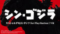 The Shin Godzilla Special Demo Content (『シン・ゴジラ』スペシャルデモコンテンツ "Shin Gojira" Supesharu Demo Kontentsu) is a free virtual reality demo made for the PlayStation® VR. It was released exclusively in Japan on the PlayStation Store on October 13, 2016.[1]