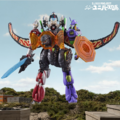 Shin Universe Robo (シン・ユニバースロボ Shin Yunibāsu Robo) is a giant robot formed through the combination of Godzilla, Ultraman, Evangelion Unit-01, and Kamen Rider's motorcycle Cyclone. It was created in 2023 as a toy by Bandai, and appeared in suit form in a tokusatsu web commercial.