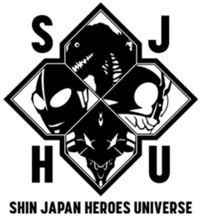 The Shin Japan Heroes Universe (シン・ジャパン・ヒーローズ・ユニバース Shin Japan Hīrōzu Yunibāsu, abbr. S.J.H.U.) is a collaborative project launched by Toho, khara, Tsuburaya Productions, and Toei.[22] Announced on February 13, 2022,[23] a website was launched the same day[24] with key art illustrated by Shin Godzilla designer Mahiro Maeda and a brand emblem designed by Super Sentai and Shin Kamen Rider artist Yutaka Izubuchi.[22] Crossing over the starring characters from the four Shin films, various events and merchandise have been launched as part of the project.