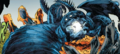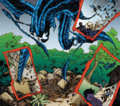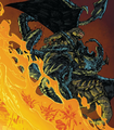 Shinomura is a massive, winged, dragon-like monster with blue scales and black wings. It possesses multiple eyes and a scorpion-like tail. Shinomura's gigantic super-colony cells are black and blue and resemble starfish.