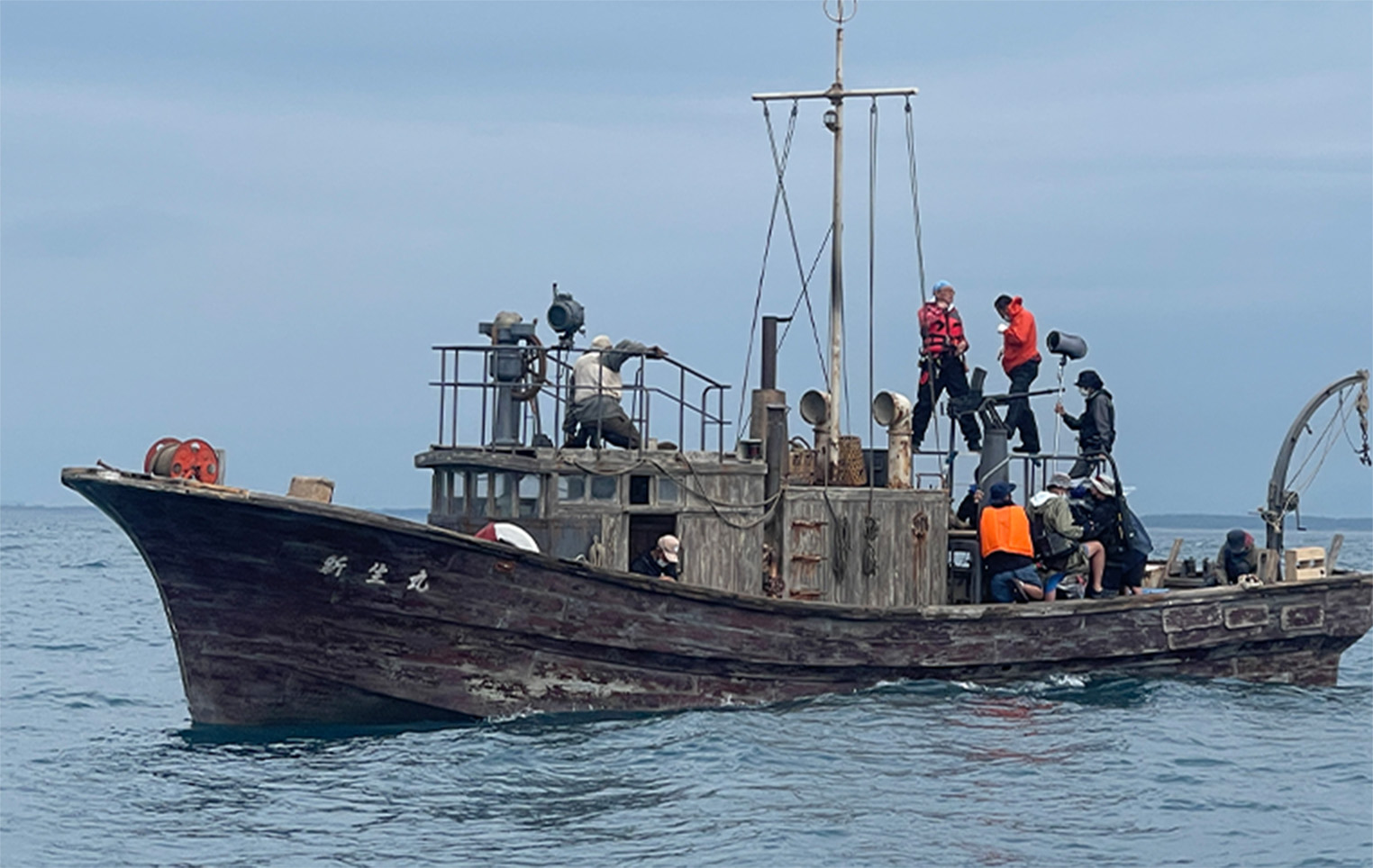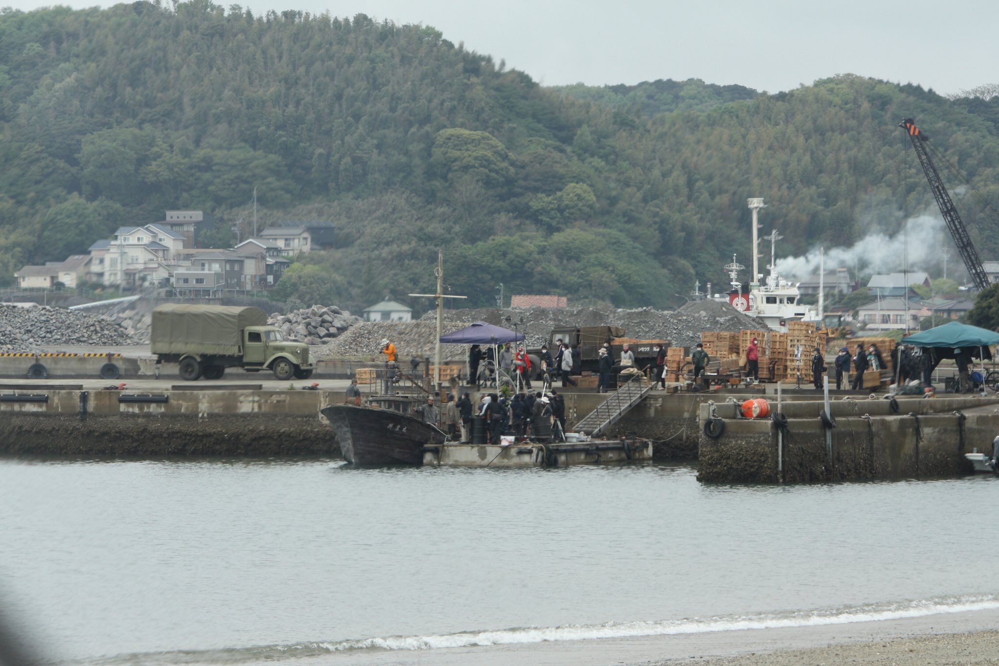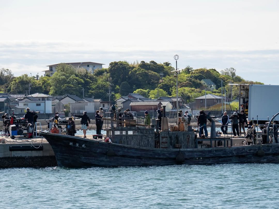 Filming took place in May 2022 over the course of about two weeks in Lake Hamana and the open ocean. The scene where the Shinseimaru is docked was filmed at Higashihazu Port.[3] It took a month to finish the Shinseimaru, but production ran into issues such as the ship leaning slightly, the engine's mounting position being offset, the platform specially made for it not fitting, and it almost sinking after being floated. The ship was drained of seawater, waterproofed with FRP, and had counterweights put on one side.[2] Even then, it was still sinking on set, and multiple staff and cast members suffered from seasickness and vomiting.[3][2] Yamazaki later stated, "We had been warned that filming on the ocean would be difficult, but it far exceeded our expectations."[6]