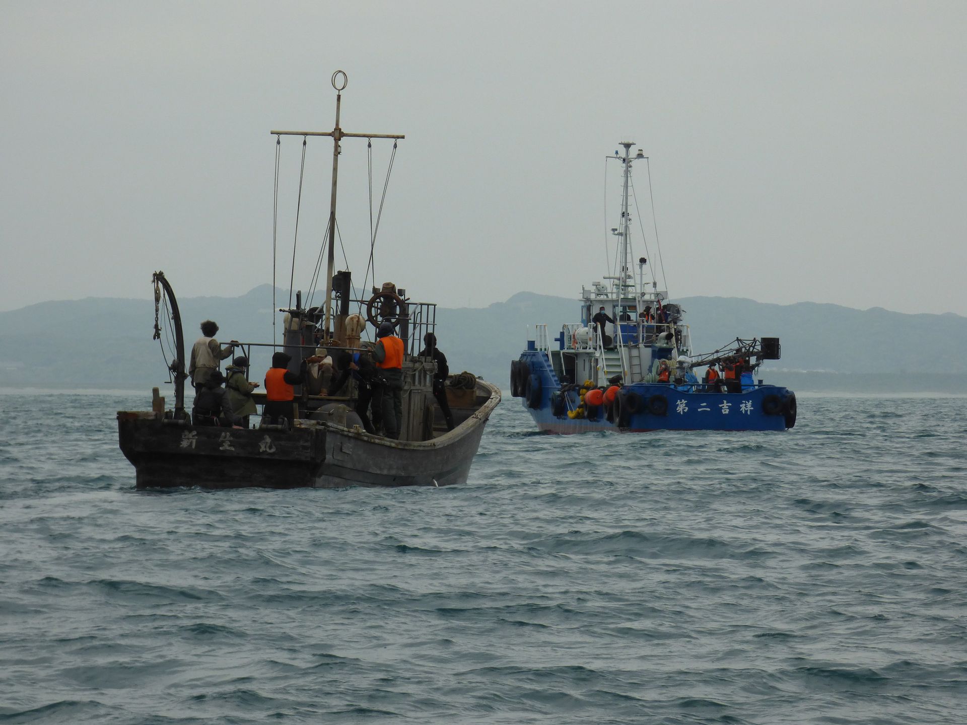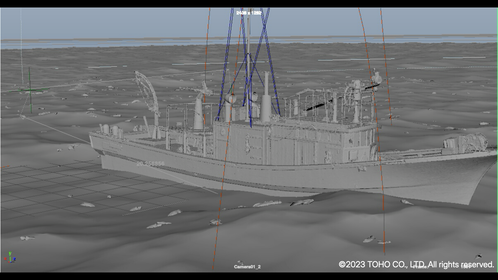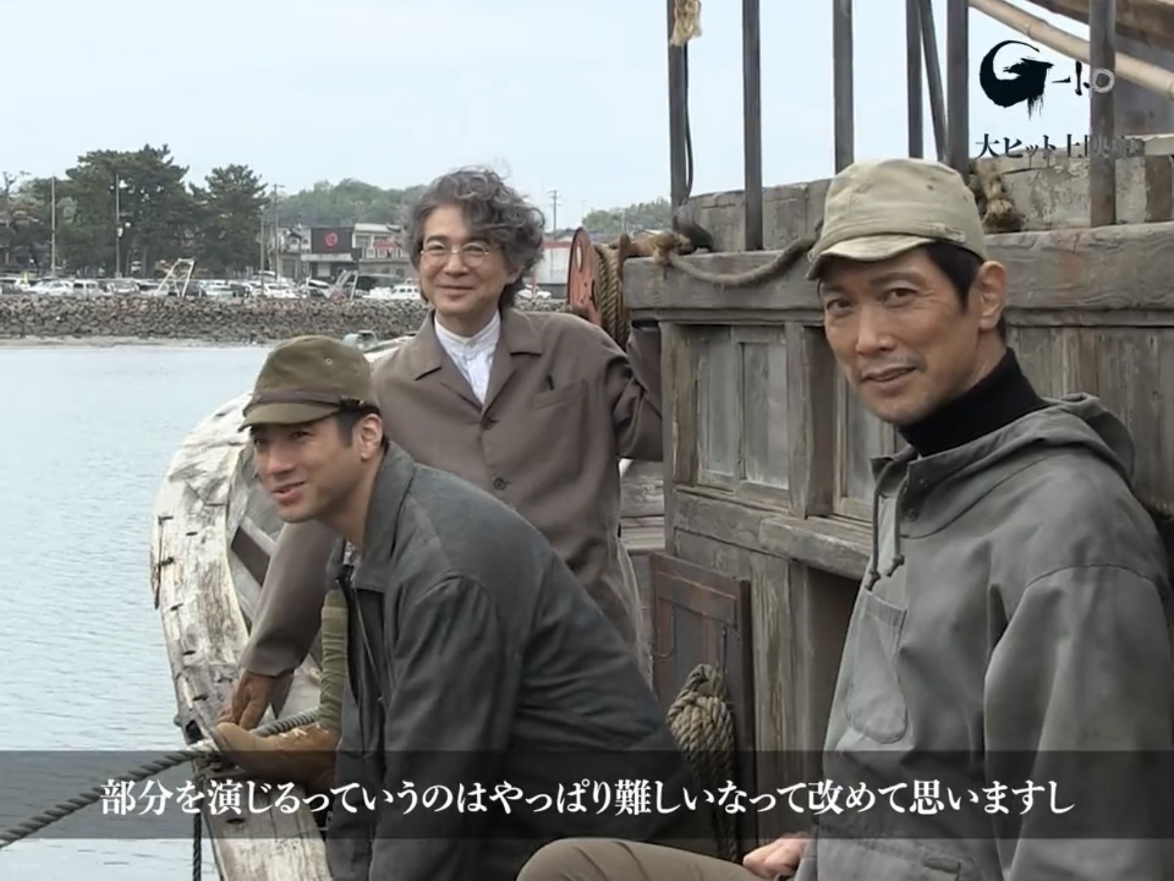 Filming took place in May 2022 over the course of about two weeks in Lake Hamana and the open ocean. The scene where the Shinseimaru is docked was filmed at Higashihazu Port.[3] It took a month to finish the Shinseimaru, but production ran into issues such as the ship leaning slightly, the engine's mounting position being offset, the platform specially made for it not fitting, and it almost sinking after being floated. The ship was drained of seawater, waterproofed with FRP, and had counterweights put on one side.[2] Even then, it was still sinking on set, and multiple staff and cast members suffered from seasickness and vomiting.[3][2] Yamazaki later stated, "We had been warned that filming on the ocean would be difficult, but it far exceeded our expectations."[6]