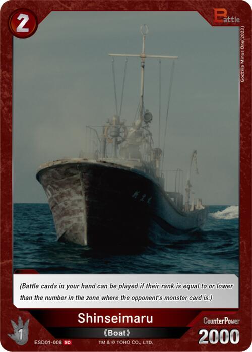 The Shinseimaru (新生丸 Shinseimaru, lit. "Rebirth") is a fictional wooden-hull minesweeper that appeared in the 2023 film Godzilla Minus One, captained by Seiji Akitsu and crewed by Kenji Noda, Shiro Mizushima, and Koichi Shikishima. After World War II, the Shinseimaru was deployed alongside the Kaishinmaru to search for and destroy sea mines in Japanese waters.