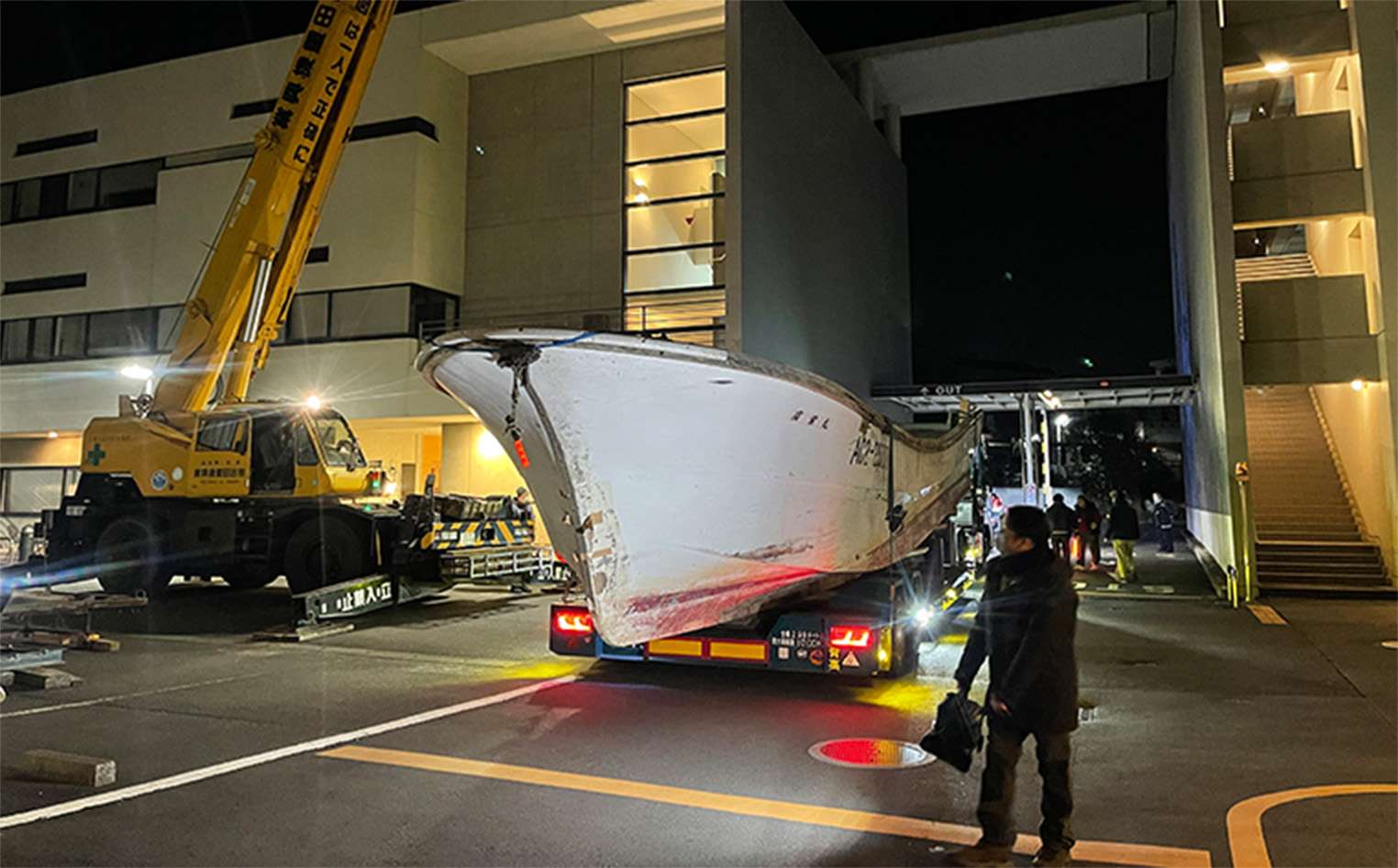The unfinished Shinseimaru prop being brought into TOHO Studios