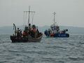 Shinseimaru and Kaishinmaru in front of a Liberty ship