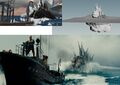 - The patrol boat Kuroshio 12 that reports Godzilla's return before Operation Wada Tsumi is the same boat model as the Shinseimaru and Kaishinmaru, painted gray with the gun and layout rearranged.