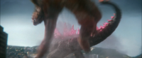 The Skar King was undeterred by an indirect blast of Godzilla's atomic breath, with only slight burns to his fur. He remained alive after being completely frozen over by Shimo's ice breath, prior to Kong shattering him. He also tolerated direct hits to the face from Kong using the B.E.A.S.T. Glove, albeit losing a tooth.