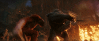 Despite his advanced age, the Skar King displayed impressive athletic prowess, being able to leap a great distance all the way from his cave’s perch to the floor of his kingdom. During his first battle against Kong, he dodged three swings of his axe before kicking him in the jaw, managing to (briefly) knock him down. After disarming Kong with the Whipslash, he easily leapt over him to strangle him from behind. When fighting on the surface in Rio de Janeiro, he leapt through vast stretches of the city while avoiding Godzilla's atomic breath.