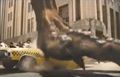 The GODZILLA commercial tie-in for Smart starts with Godzilla stomping on various cars. A woman and a man spot a Smart Fortwo and head for it. They get into the car as Godzilla stomps on it. However, the car is completely intact. As Godzilla tries to step on it again, an X-ray image of Godzilla's foot and the car appear as the commercial ends.