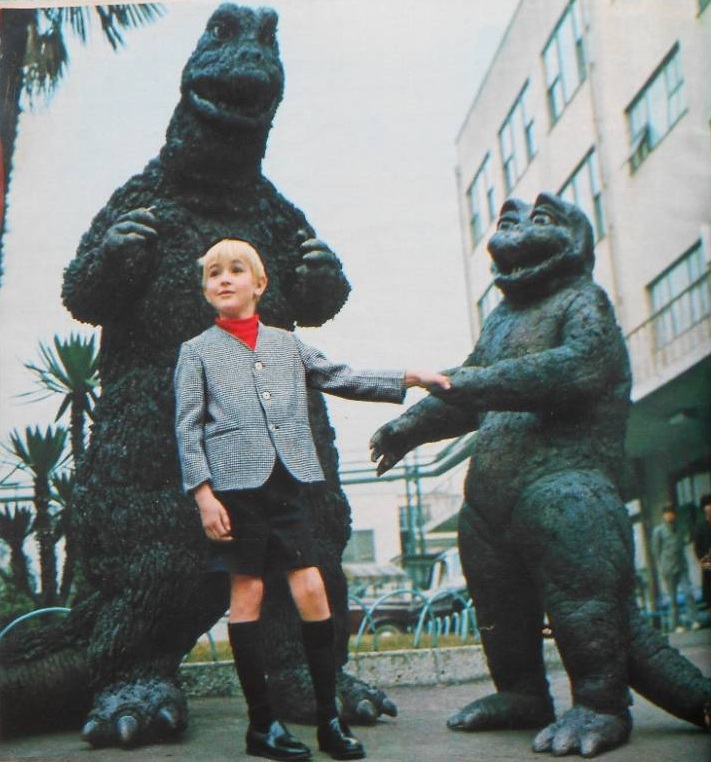 Godzilla gives his newly-adopted son a ride on his tail