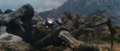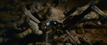 Godzilla and his son embrace and enter hibernation as Sollgel Island freezes over