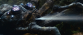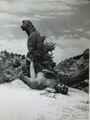 Filming of deleted sequence showing Godzilla at the edge of Sollgel Island after leaving Minilla behind
