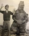 Mark Jaramillo looks at Godzilla's concept maquette for Son of Godzilla in 2014