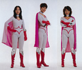 The Spacewomen look like ordinary humans. However, when they work together, they wear white uniforms with red trim. Giruge wears a similar uniform, although it is black with red trim instead.