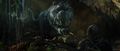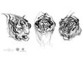 The Spirit Tiger resembles an abnormally large Bengal tiger or white tiger with antlers. The serrated stripes running down the Spirit Tiger's body are composed of epidermal leaves that shimmer in the soft breezes.[1] Director Jordan Vogt-Roberts cited the video game Okami as an influence on its design.[2]