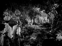 While grazing in the jungles, a Stegosaurus was happened upon by a group of sailors from the Wanderer, who were tracking Kong in hopes of rescuing Ann Darrow. Fearful of what the beast might do, they incapacitated it with gas bombs before Carl Denham shot it twice through the heart and once in the head, and left its carcass behind as the party continued their search.