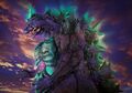 Super Godzilla (スーパーゴジラ Sūpā Gojira) is an alternate form of Godzilla created by Toho that first appeared in the 1993 Godzilla video game Super Godzilla and would go on to inspire the design of SpaceGodzilla in 1994's Godzilla vs. SpaceGodzilla. Super Godzilla later re-appeared in 2024 as a character in Godziban to encounter Bagan once again.
