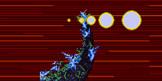 Super Godzilla's Stomach Beam (腹ビーム)[1] is his most powerful attack. His navel core shines as energy swirls around it, before unleashing a blue blast from his navel core that eventually morphs into the shape of Super Godzilla's head and continues to blaze through until it hits the opponent, causing massive damage.