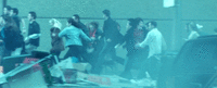 - For the gif I cut off an intermediary shot where 2 guys are screaming and looking up that lasts a couple of seconds. In the actual movie it doesn't cut like that, from the explosion to an immediately walking-around-the-corner Zilla. Titanollante ( talk | contribs )