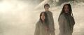 2015: Shaw reports that no one survived the helicopter crash and urges the group to leave quickly so they can determine where Godzilla is headed before Monarch. He also takes the map. Cate believes stopping Godzilla is impossible, but Shaw explains that he's actually trying to help the Titan. He promises them all the answers they want, but Cate, May, and finally Kentaro decide to part ways with them to continue looking for Hiroshi. He leaves them supplies to last until they reach civilization, ten kilometers away. As they walk, Kentaro and Cate can't decide whether Hiroshi was really waving them away, as only Shaw saw him through binoculars. Cate is optimistic - they're finally sure he's alive and there could be any number of reasons why he drove away. Kentaro asks how they can continue their quest without the map or any real resources. Cate points out that May always makes backups. May stiffens at that, telling them about her deal with Duvall and how she gave away their location in Alameda Point. She admits that she angered the wrong people a few years ago and fled to Japan to escape them; Duvall offered her a deal that would have allowed her to return home. She has enough money saved to cover their travel, but Cate angrily refuses it, realizing May only urged her further into the desert because of the deal. She storms off towards the city in the distance.