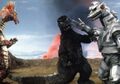 Mechagodzilla 2 and Titanosaurus continue to advance on Tokyo together