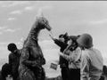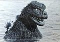 The Fake Godzilla suit is used to portray Godzilla wading out to sea at the end of the film