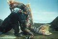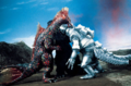 Titanosaurus bites into Godzilla's face to pick him up