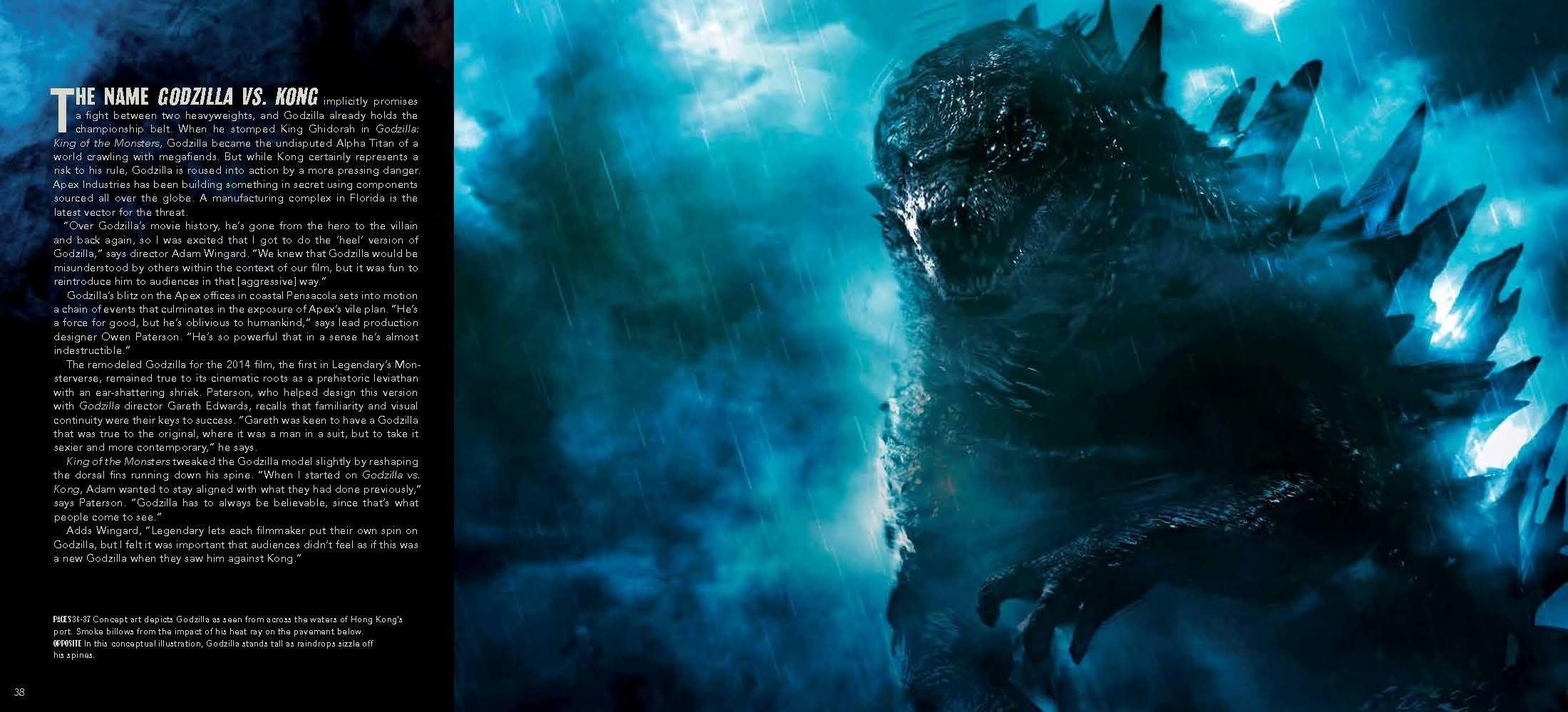 Godzilla vs. Kong: One Will Fall - The Art of the Ultimate Battle Royale is an art book for Godzilla vs. Kong written by Daniel Wallace.[1] It was published by Insight Editions on May 21, 2021.[1][a] Read from left to right, it is 156 pages long.[2]