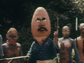 In a secluded gorge, Dark Clan leader Coonjo gathered a group of her loyal minions, ordering them to attack humanity. In a small village, the earth began to shake and a red haze overtook the area. As the citizens panicked, the yokai appeared from a cloud of smoke and launched their attack. Suddenly, a blinding light cut through the haze and a yellow figure appeared in the distance. Proclaiming himself as Kotaro Ushiwaka from the land of light, the hero challenged the attackers, leaping into the air and striking one in the head with a Hurricane Kick. Kotaro slashed through the minions with his naginata, defeating each of them. Her plans foiled, Coonjo swore revenge against the mysterious hero.