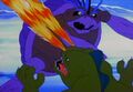 Eventually the magnetic turtle becomes so big from the excessive magnetic energy it's fed off of that it dwarfs Godzilla in size. At one point, the turtle even attempts to swallow Godzilla whole, but luckily Godzilla managed to resist. At that moment, Quinn gets an epiphany: If the turtle is placed directly under the South Pole, it would get too much energy for it to handle and possibly kill it. As Quinn and Pete relay the information to Godzilla, Godzilla manages to lure the now titanic turtle directly under the pole and sure enough, the monster swells up like a balloon and explodes. During the explosion, the mini-sub (as well as the rest of the material that the monster ate) is sent flying, but luckily is caught by Godzilla, saving Majors and Brock.