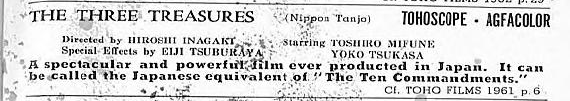 The Three Treasures listed with an English dub in Toho Films (1962)