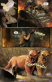 A week later, the mech was transported to the Hollow Earth in pieces and reassembled. With Martin's company RM Construction a valued Monarch contractor, he was able to bribe enough parties to grant him free reign to go on a killing spree for the next 48 hours. First, he ambushed a Warbat drinking water and grabbed it by the tail, slamming its head into a rock and killing it before it could defend itself. He then dispatched a Sker Buffalo before coming across Spineprowler tracks and two cubs. As Martin approached and prepared to crush the young monsters, their mother leaped into the mech, interrupting the attack. As he was pinned down, Martin used the horns mounted on the mech's head to impale and fatally wound the feline. He continued his advance on the cubs before this time being intercepted by Kong. Titan Hunter charged towards Kong and grabbed him by the throat and choked him before throwing the ape to the ground. As he prepared to smash his mechanized fists onto Kong's body, Kong grabbed the oncoming arms, using them to pull himself up and drop-kick the invader. Kong repeatedly slammed his fists into the mech before Martin punched him in the face, throwing him off. The Titan then proceeded to suplex his opponent over a cliff, with Martin grabbing onto Kong's hand. After Martin raved at the injustice, Kong threw him off, sending the machine plummeting to the ground below and smashing into the ground with a massive explosion, breaking it into pieces. After Martin emerged from the wreckage, he was killed by the same cubs he had been attempting to squash.