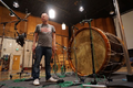 Tom Holkenborg with a drum, five feet in diameter, which he commissioned for the Godzilla vs. Kong soundtrack