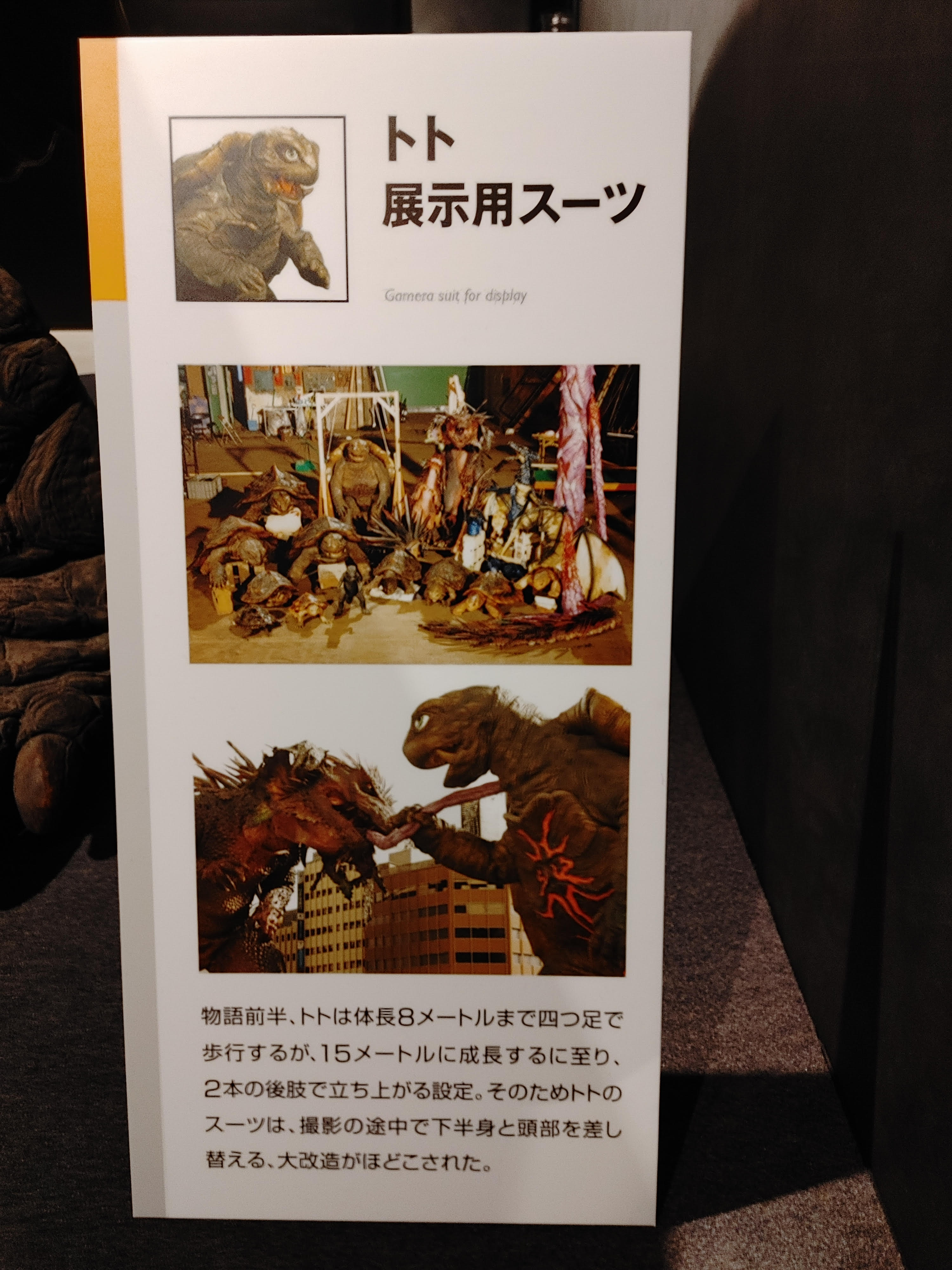 - The sizes of Toto are somewhat reminiscent of Gamera's growth in the aforementioned early draft of the 1995 film. In that draft, his size increased from an hatchling to 1 meter, 8 meters, and up to over 20 meters.[31]