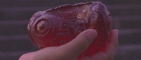 According to an anatomical diagram included in Gamera the Brave's theater program, Toto has a magatama-shaped organ called the Spirits Crystal (スピリッツ・クリスタル Supirittsu Kurisutaru) which enables him to perform several supernatural feats such as reading human thought, sensing human emotions, understanding human speech, and sensing the emergence of evil monsters from a distance. The red pearls may glow in response to Toto's emotion.[25]