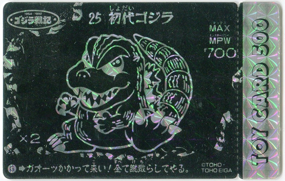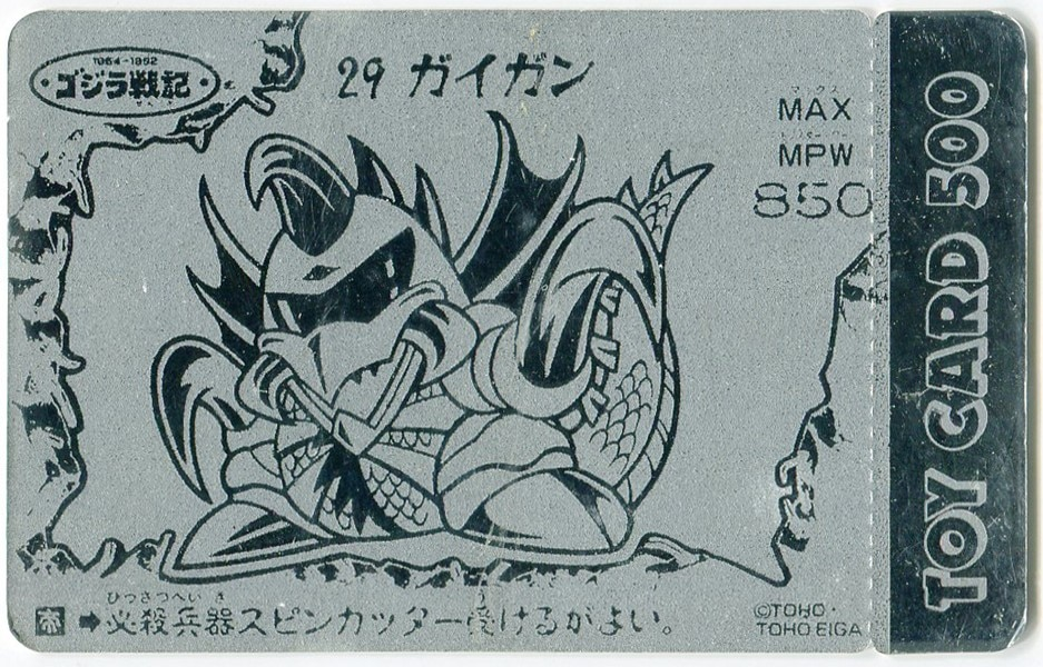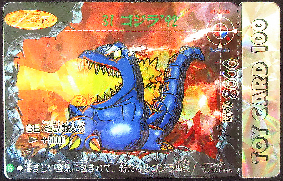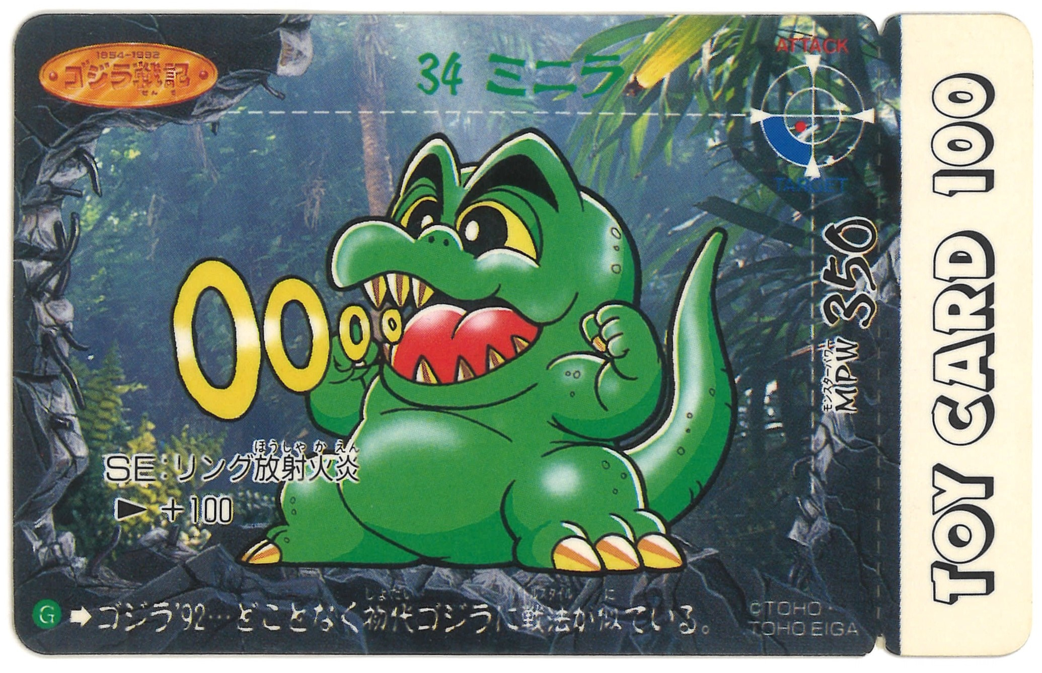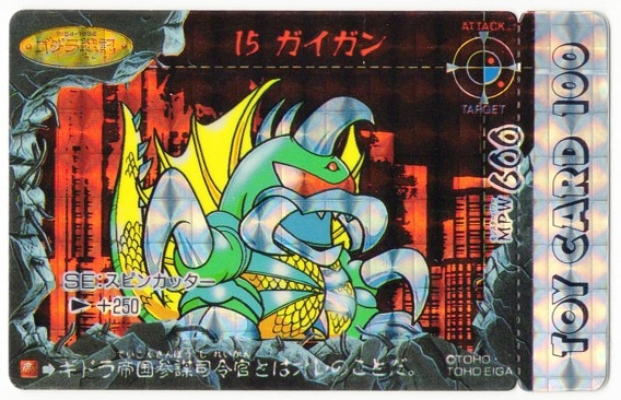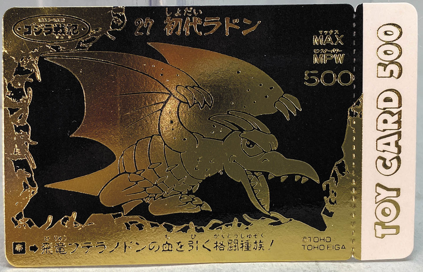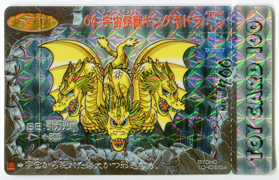 Toy Card, stylized TOY CARD (トイカード Toi Kādo), was a line of Japanese collectible gift cards manufactured by IMS Co., Ltd. (株式会社アイエムエス Kabushiki Gaisha Aiemuesu). Two series based on the Godzilla franchise were produced from the late 1980s to the early 1990s: Godzilla Wars (ゴジラウォーズ Gojira Uōzu), released in three sets from 1989 to 1990, and Godzilla War Chronicle (ゴジラ戦記 Gojira Senki) in 1992.