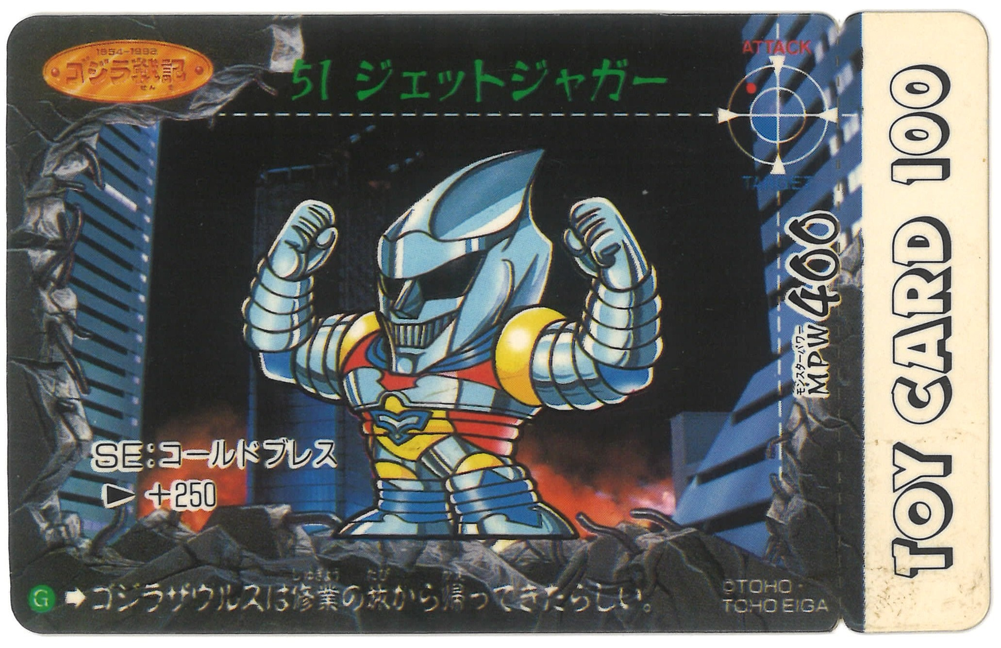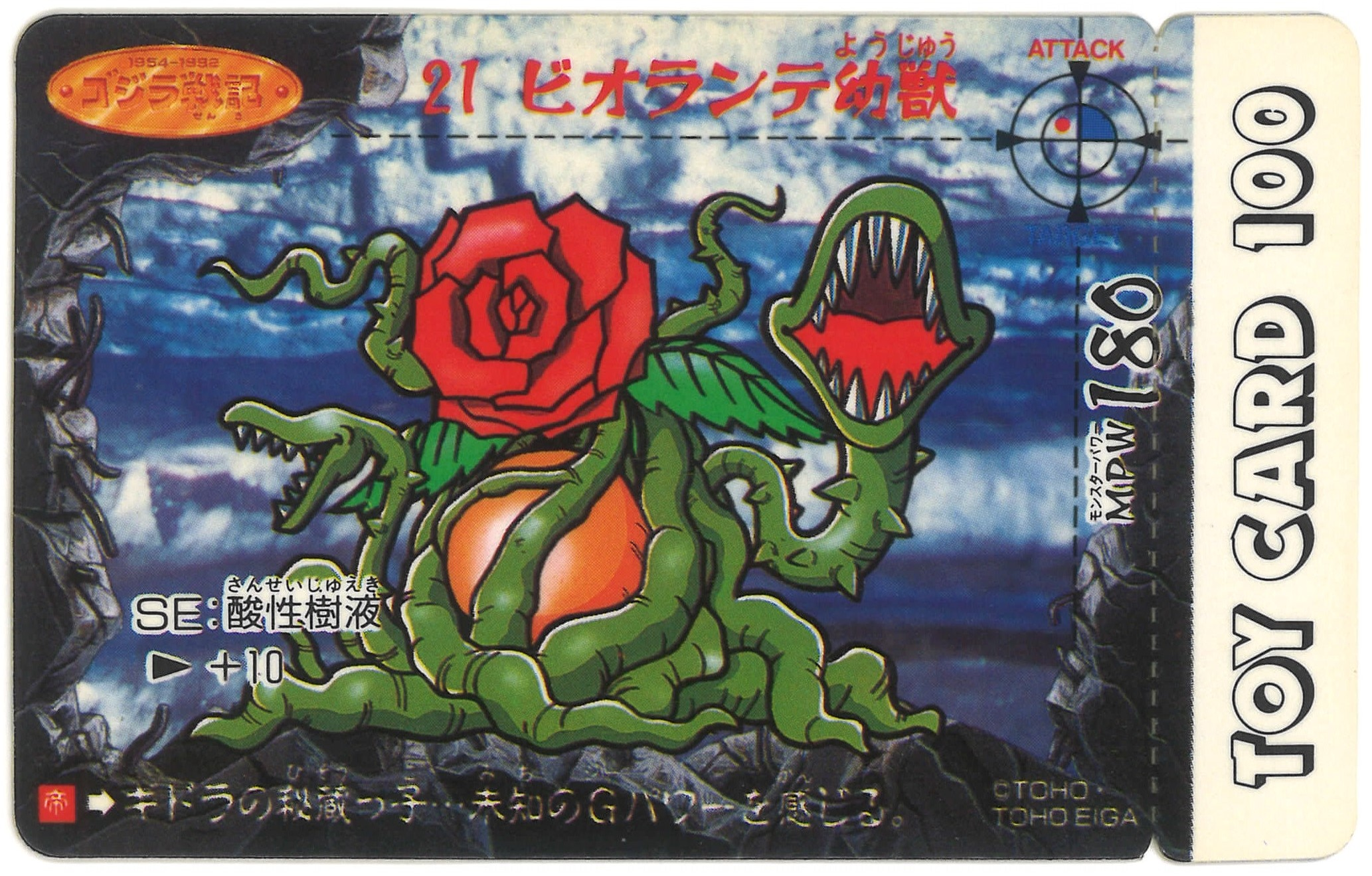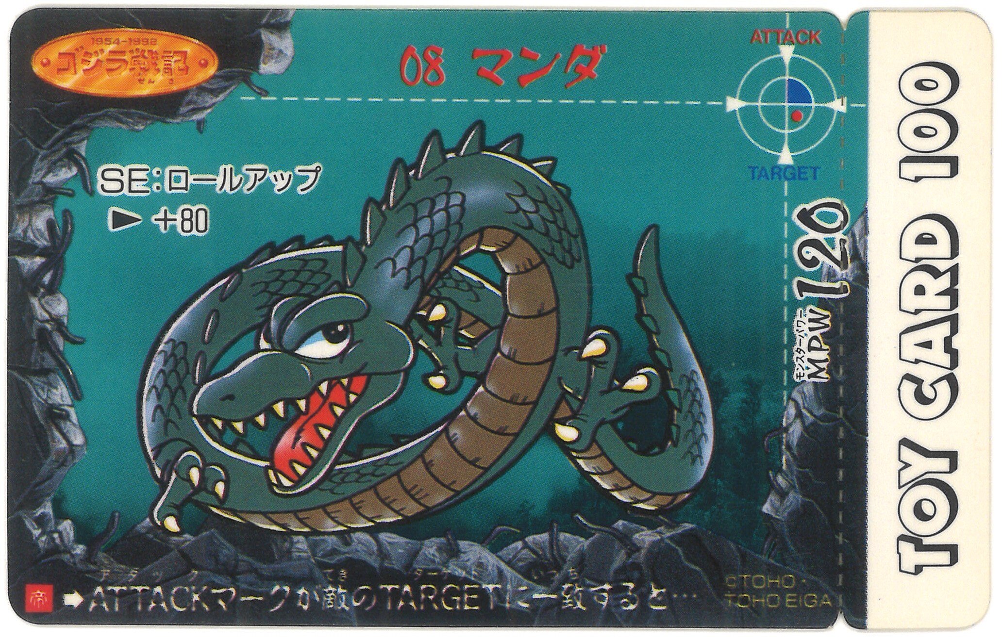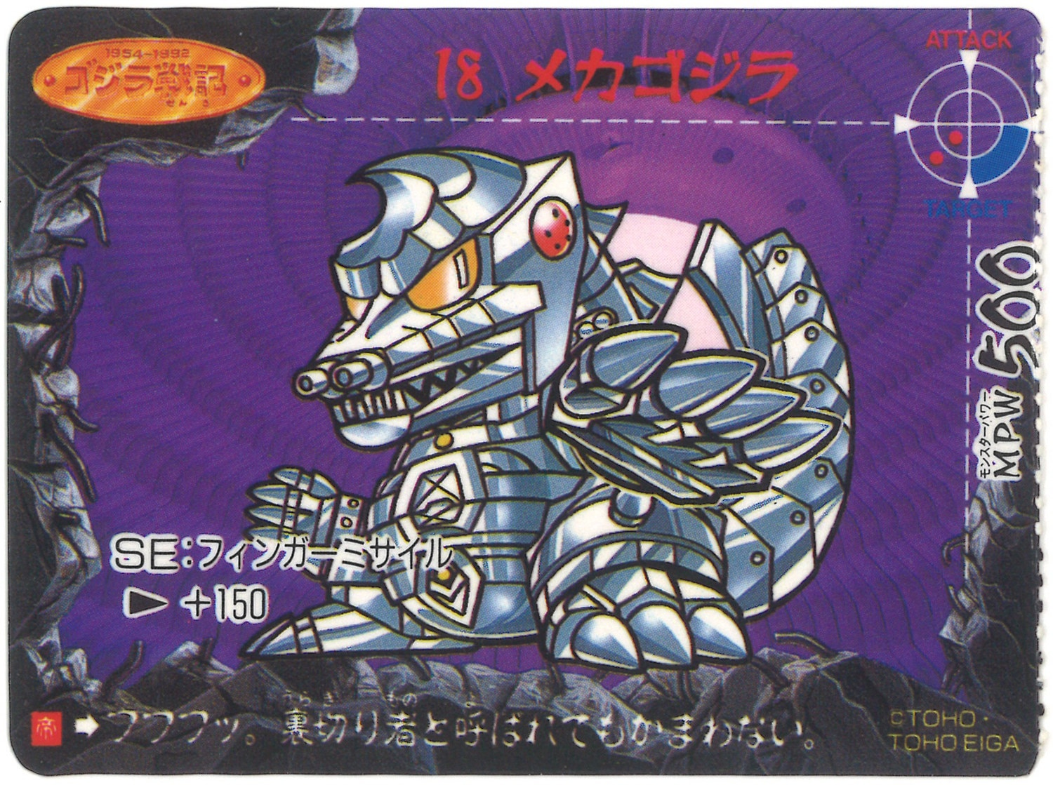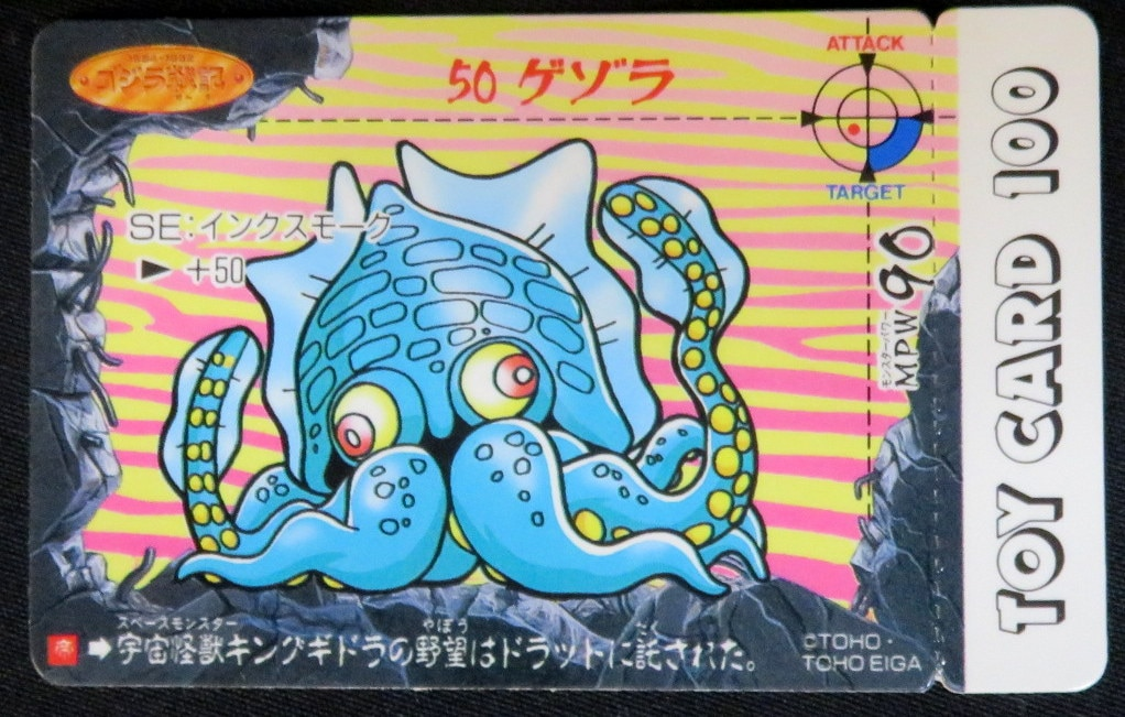Toy Card, stylized TOY CARD (トイカード Toi Kādo), was a line of Japanese collectible gift cards manufactured by IMS Co., Ltd. (株式会社アイエムエス Kabushiki Gaisha Aiemuesu). Two series based on the Godzilla franchise were produced from the late 1980s to the early 1990s: Godzilla Wars (ゴジラウォーズ Gojira Uōzu), released in three sets from 1989 to 1990, and Godzilla War Chronicle (ゴジラ戦記 Gojira Senki) in 1992.