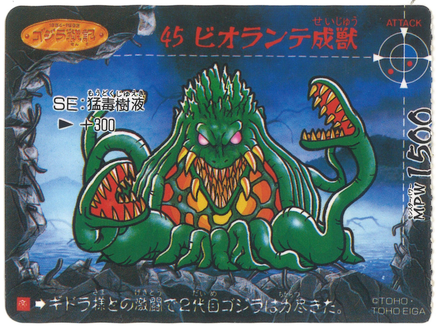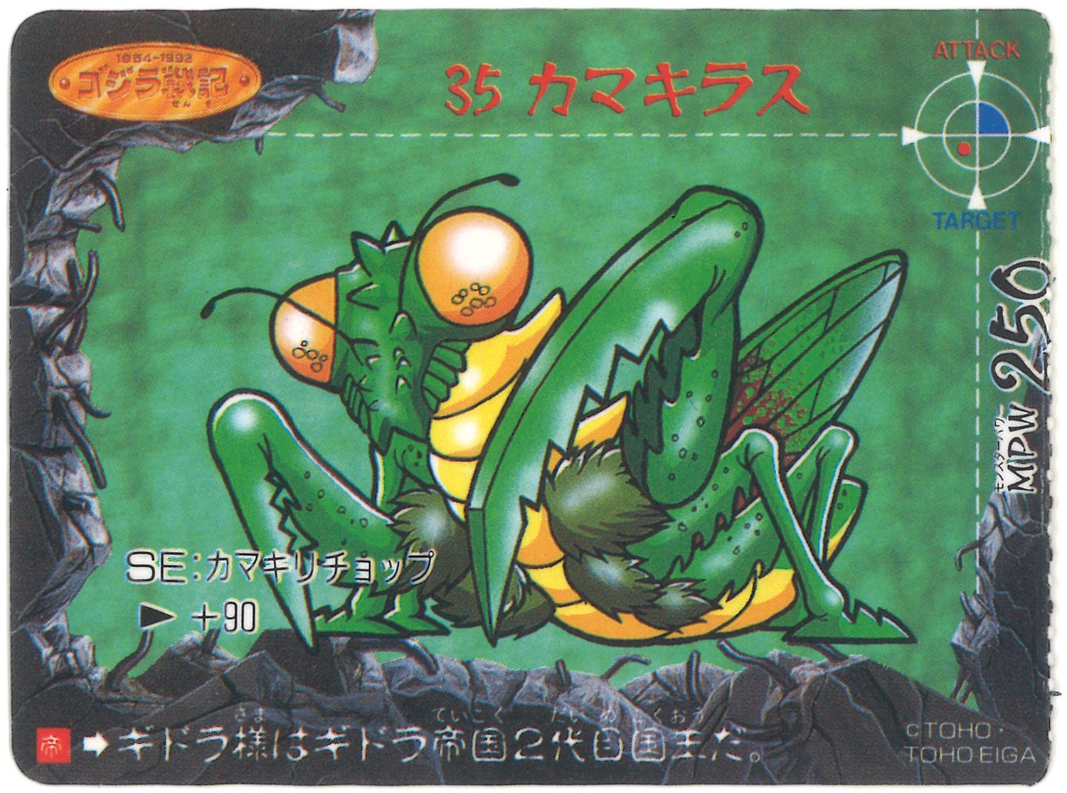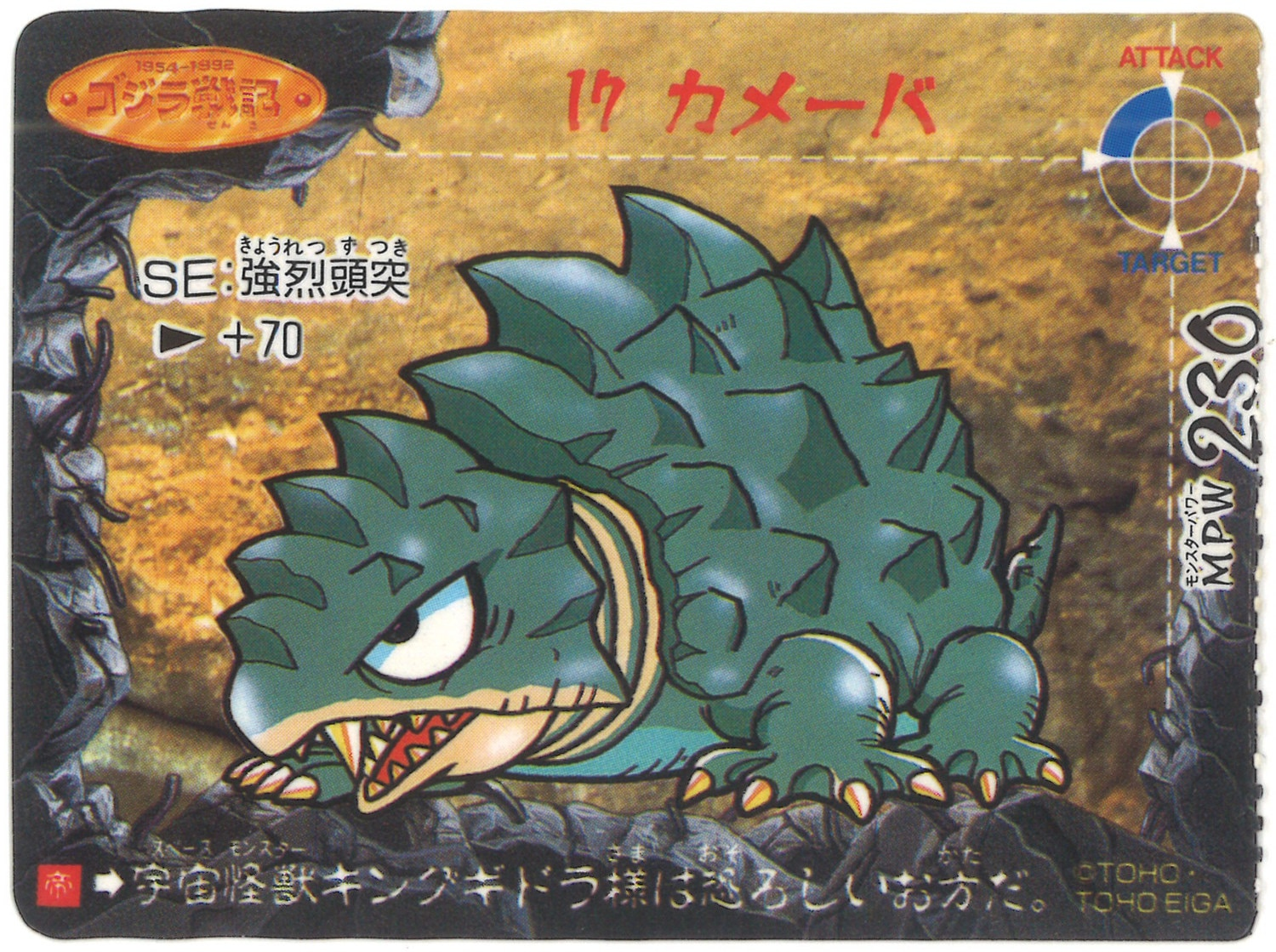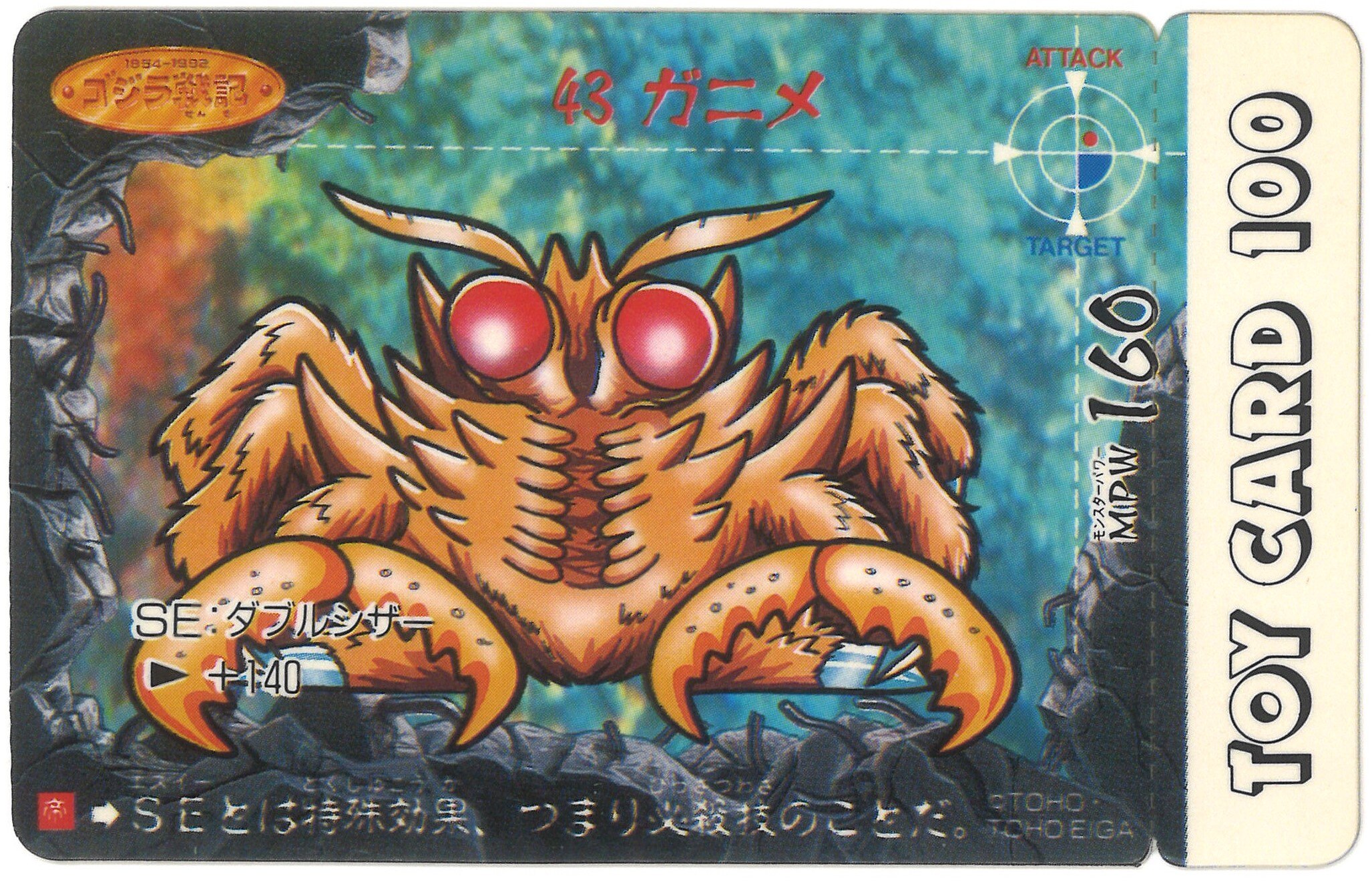 Toy Card, stylized TOY CARD (トイカード Toi Kādo), was a line of Japanese collectible gift cards manufactured by IMS Co., Ltd. (株式会社アイエムエス Kabushiki Gaisha Aiemuesu). Two series based on the Godzilla franchise were produced from the late 1980s to the early 1990s: Godzilla Wars (ゴジラウォーズ Gojira Uōzu), released in three sets from 1989 to 1990, and Godzilla War Chronicle (ゴジラ戦記 Gojira Senki) in 1992.