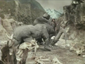 As Jack Driscoll followed King Kong and the captured Ann Darrow, a Triceratops charged at him, smashing itself against the side of the path he was traversing. Jack stumbled down the hill and found himself face-to-face with the dinosaur, but used a gas bomb to knock it out before it could charge again. Barely breaking stride, he continued his quest.