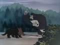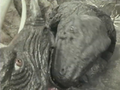 After stealing the Polar-Borer, the Tyrannosaurus rex tried to bury it in a cave near its lair. In the process, it awakened a Triceratops sleeping underground, who engaged it in a vicious battle. The Triceratops drew first blood, stabbing the Tyrannosaurus' chest with its horns and biting its leg. The Tyrannosaurus eventually gained the upper hand by throwing the Triceratops to the ground, then sinking its sharp claws into its enemy's stomach. Its powerful jaws delivered the final, fatal blow.