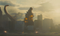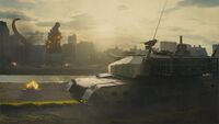 The JSDF began an assault on Godzilla Terrestris in Tokyo. Fighter jets launched missiles at the monster, only for Godzilla to transform into his final form, Godzilla Ultima. Type 10 Tanks arrived and shot Godzilla to no effect as the kaiju charged his atomic breath and fired, melting the tanks and setting the surrounding area ablaze.
