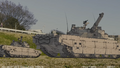 Two wrecked Type 10s, with one tank having detached treads