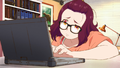 A portrait of a Tyrannosaurus in Mei Kamino's room.