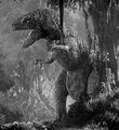 Two Tyrannosaurus’ attack Godzilla