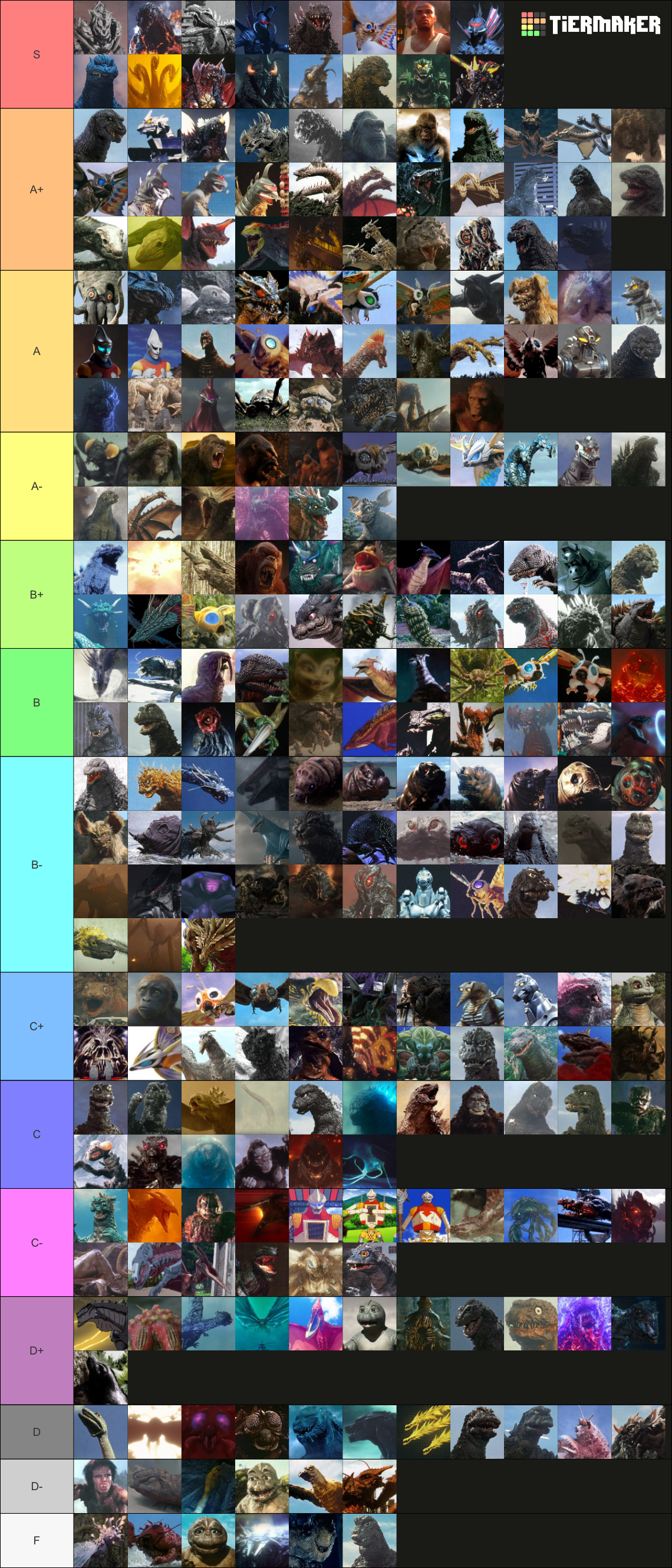 •#1 Anguirus (First Generation) (Anguirus Sweep, baby!) •#2 Gigan (Final Wars) (He's awesome, he's intimidating, he's EVIL, what's not to love?) •#3 Godzilla (Heisei Series) (The Pinnacle of Kaiju Characterization.) •#4 Monster X/Keizer Ghidorah (One of the coolest Kaiju in both concept and execution, Monster X being my literal favorite character design in all of fiction.) •#5 Destoroyah (Utterly, completely, and dumbfoundingly fantastic!) •#6 King Ghidorah (Monsterverse) (I love this design!) •#7 Battra (The Best Fictional Insect design of all time.) •#8 Godzilla (Final Wars) (The Pinnacle of Awesomeness.) •#9 Megalon (Megalon for Smash!) •#10 Godzilla (Minus One) (He's so EVIL!)